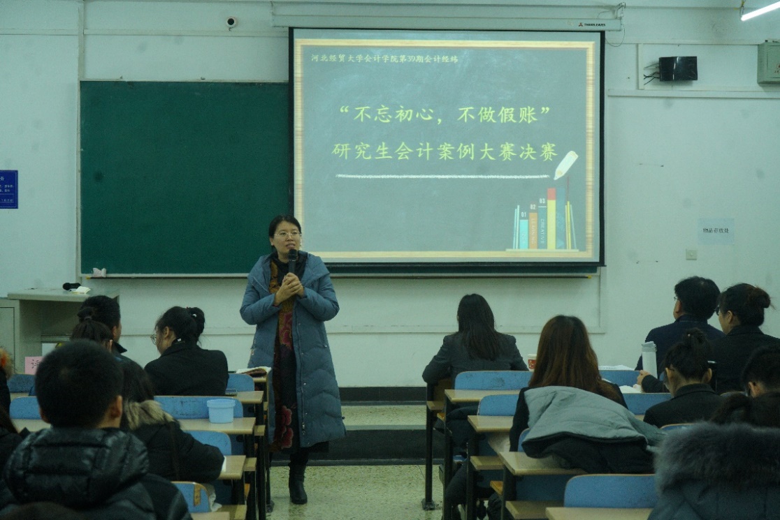 12月16日下午,永利集团304官网在第三教学楼B202教室举办了以“不忘初心,不做假账”为主题的第39期“会计经纬”案例分析大赛决赛。永利集团304官网经理袁振兴、副经理李西文出席,比赛特邀河北地质大学永利集团304官网副经理袁志忠教授、河北建设投资集团有限公司财务管理部副总经理兼河北地质大学MPAcc社会导师张旭蕾教授以及永利集团304官网优秀研究生导师祁钧业教授担任比赛评委,永利集团304官网辅导员宋茹、吴蓓及2019级全体研究生100余人参加。