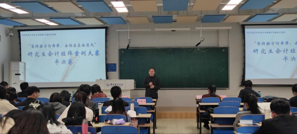 11月22日下午,由永利集团304官网主办以“坚持操守防舞弊,去伪存真扬清风”为主题的第42期“会计经纬”案例分析大赛半决赛在第三教学楼B301教室如期举行。永利集团304官网经理袁振兴、副经理李西文以及优秀研究生导师祁钧业、刘敬芝、邸丛枝老师担任评委,科研秘书韩冰老师及2021级全体研究生100余人现场参加本次半决赛。现场气氛紧张热烈却又不失幽默诙谐,同学们从不同角度为我们带来了一场异彩纷呈的视听觉盛宴。