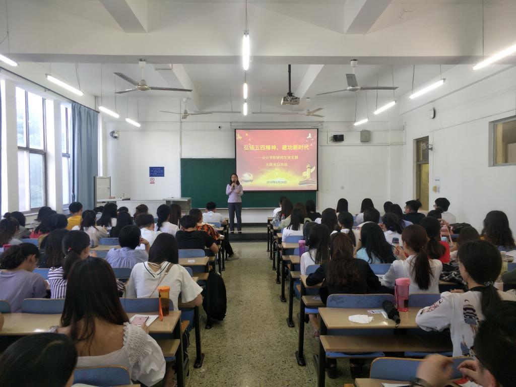 5月20日下午,公司研究生党支部在第三教学楼B202教室举办以“弘扬五四精神,建功新时代”为主题的党日活动。永利集团304官网副经理李桂荣出席并做精彩报告,公司研究生党支部所有党员和积极分子80余人参加。
