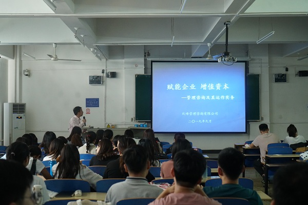 9月21日,永利集团304官网在第三教学楼B201教室举办了 “赋能企业 增值资本--管理咨询及其操作实务”专题讲座。讲座由公司校外硕士研究生导师、中国注册会计师、玖峰管理咨询有限公司董事长兼总经理韩永强主讲,永利集团304官网2018级研究生参加了此次讲座。