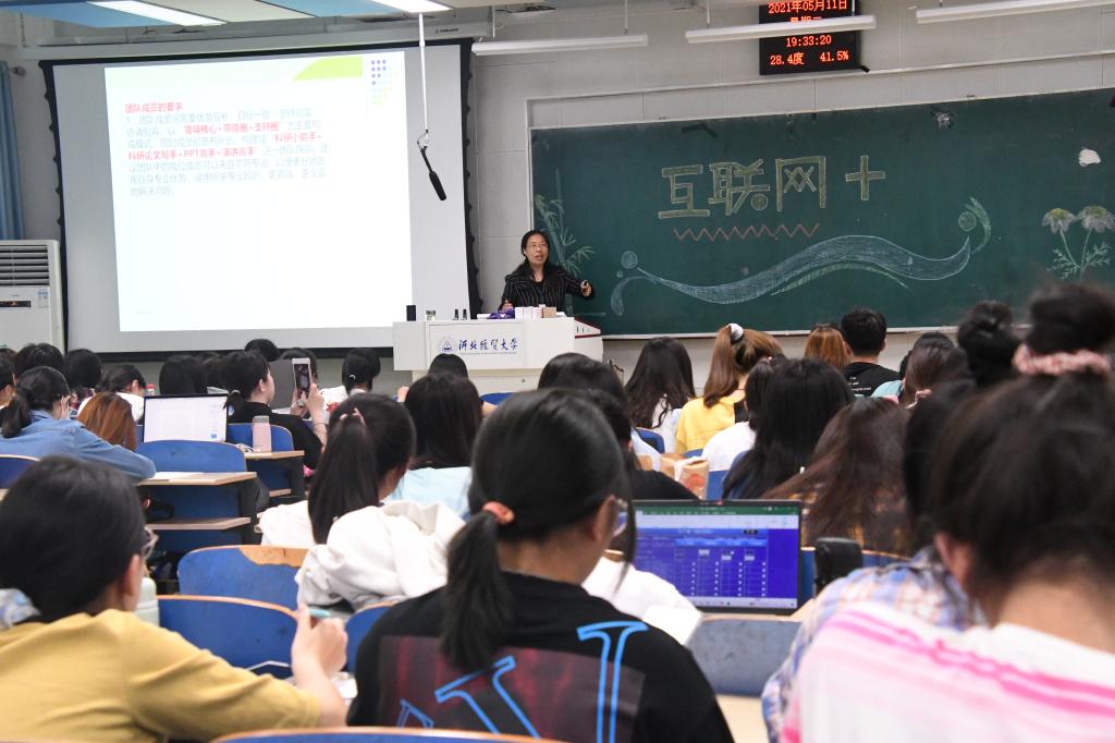 分享会上,程丽梅首先强调了“互联网+”大赛的重要性,希望同学们以认真的态度积极准备此次比赛。王巧义从大赛的含金量、参赛项目要求、参赛注意事项、大赛评审规则以及策划书的写作等方面做了详细指导。刘天鹤结合自身参赛经验,介绍了团队成员的选择、项目方向的确定以及策划书的细节完善等内容。闫涵对于参赛组别的选择、项目筹备的时间安排做出具体解释,同时向大家展示了自己的获奖作品,并对其做出全面、详细的讲解。同学们认真倾听,积极提问和交流,反响热烈。
