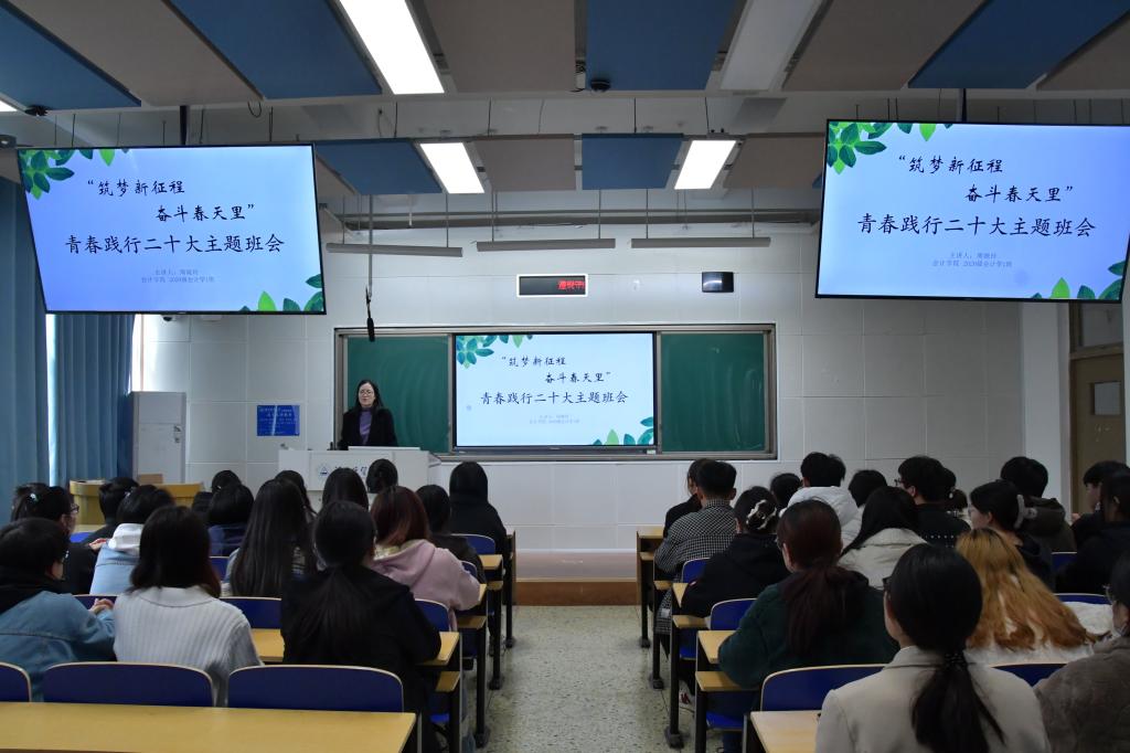 为引导青年老员工深入学习贯彻党的二十大精神,坚定理想信念,厚植爱国情怀,凝聚思想共识,推动二十大精神“入脑入心入行”,3月17日下午,永利集团304官网组织公司师生在三教A103观摩2020级会计1班“逐梦新征程奋斗春天里”青春践行二十大主题班会,院团委书记周晓玲主讲。公司党委书记赵文报、副书记程丽梅及全体辅导员出席本次观摩活动,2020级会计1班全体同学参加。