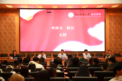 高晓峰发表致辞。他指出,校企合作是推动“新财经”教育改革的重要途径,也是人才培养的必要手段;校企大讲堂第一课的如期举办,缘于公司与河钢集团深厚合作基础,展现了河钢集团和河钢供应链对财务会计工作的高度重视。同时,他希望未来能够打造中国式现代化发展的“经贸+河钢”场景,共同向多层次、多维度、多领域的合作范畴迈进。