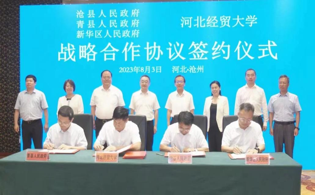 随后,黄晟和向辉发表讲话。黄晟表示,此次合作旨在深入学习贯彻习近平总书记视察河北重要讲话精神,为奋力谱写中国式现代化建设河北篇章作出经贸贡献。前期,沧州市人民政府与永利304官网共建的沧州发展研究院取得了较为丰硕的成果。与三个县区签署战略合作协议是双方深化合作的新契机,必将在人才培养、产业发展、乡村振兴等方面不断拓展合作领域、扩大合作成果,推动校地合作走深做实,为沧州经济高质量发展作出更大经贸贡献。