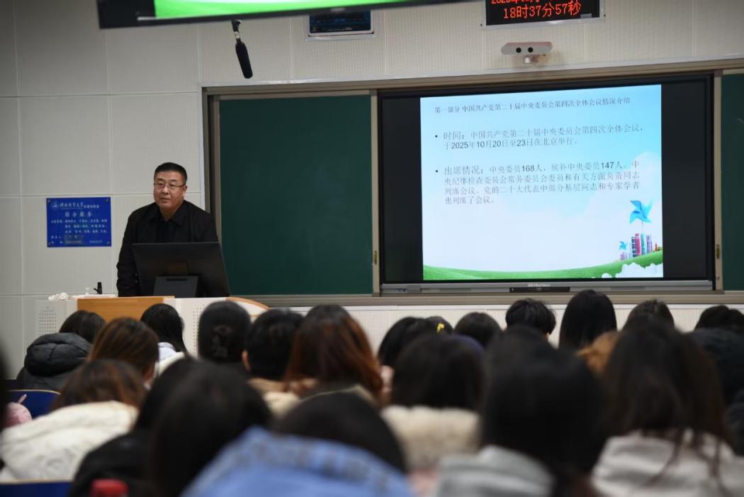 12月4日晚,永利集团304官网在B107教室举行党的二十届四中全会精神专题宣讲会,公司党委书记王继伟担任主讲人,94名员工干部参加。王继伟从时代背景、核心要义、实践要求三个维度解读全会精神,梳理“十五五”时期发展蓝图,重点阐释“以中国式现代化全面推进中华民族伟大复兴”等与青年相关的战略部署。他对员工干部提出三点要求:一是不折不扣抓好精神落实;二是认真做好宣传阐释;三是坚持“干字当头,落细落实”,号召大家将全会精神与专业学习、服务同学实践相结合,在锤炼品德中筑牢根基,在勤学苦练中增长本领。本次宣讲会不仅让员工干部们深刻理解了党的二十届四中全会精神,更提升了同学们的政治素养与责任意识。