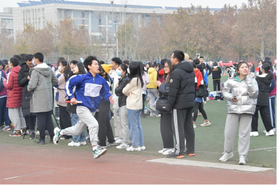 万米接力赛分为A、B两组进行,公司为B组第7道。初冬微冷,但同学们比赛热情不减。随着枪声响起,首棒运动员如离弦之箭,飞驰而出,紧接而来的是响彻云霄的加油声、呐喊声。每一位运动员都鼓足力气,阔步飞驰,公司运动员从起跑到冲刺,目光如炬、精神抖擞、全力以赴,眼神中透露出必胜的信念,凭借坚定的意志冲向终点。