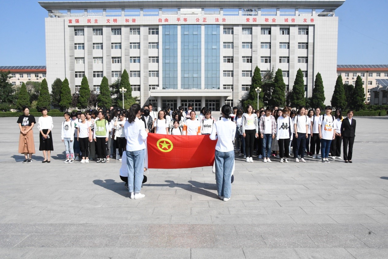 活动在全体师生合唱的国歌声中拉开帷幕,2019级员工代表刘盼满怀深情进行国旗下演讲,她将个人梦想与祖国未来紧紧联系在一起,倡议大家在大学期间努力学习、不断充实自我,以实际行动向伟大祖国献礼。随后,全体同学重温入团誓词,面向团旗庄严宣誓、唱响团歌。最后,程丽梅做总结发言,希望同学们能不忘初心、脚踏实地、肩负使命、勇于担当,为新时代中华民族伟大复兴的中国梦添砖加瓦。