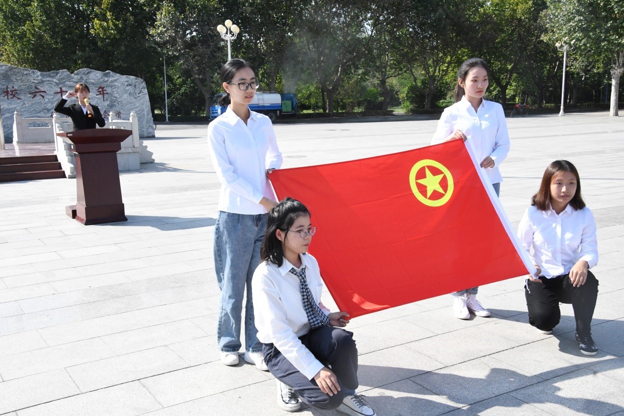 9月25日,永利集团304官网在第一教学楼前举办“我与祖国共奋进——国旗下的演讲”特别主题团日活动,迎接伟大中华人民共和国成立七十周年。公司党委副书记程丽梅、团委书记岳明明以及永利集团304官网150余名优秀团员代表参加本次活动。