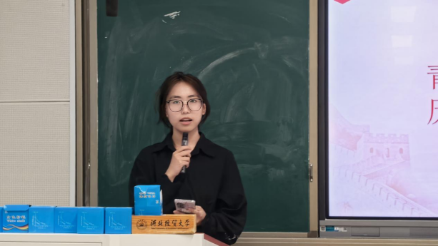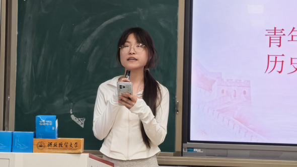 杨婷从青年、家国、历史、未来四个方面展开,一方面回顾了抗战时期等历史时刻前辈的贡献,另一方面展望了当代青年在科研、基层治理、文化传承等方面的远大前景。她鼓励同学们以史为鉴,勇担重任,为实现中华民族伟大复兴贡献力量。