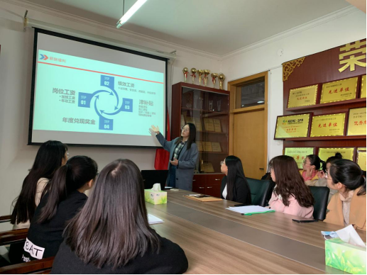 宣讲会开始后,参会同学通过观看公司宣传片,对公司有了直观全面的了解,李芬结合PPT为到场同学重点介绍了公司发展、招聘岗位、薪酬福利、职业发展等参会同学关心的问题,并解答了现场同学提出的问题。之后公司人员筛选了参会同学投递的简历,并安排了面试,最后与数名同学完成签约。