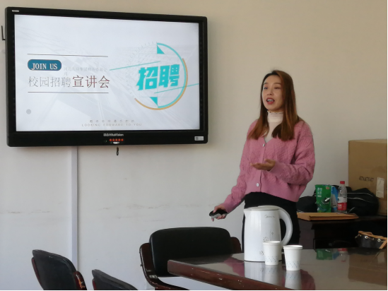 宣讲会开始后,解玉洁利用ppt介绍了本次的公司情况、招聘需求、工作内容、福利待遇、职业发展等参会同学关心的问题,并对参会同学进行了逐一面试。本次招聘会招聘效果良好。