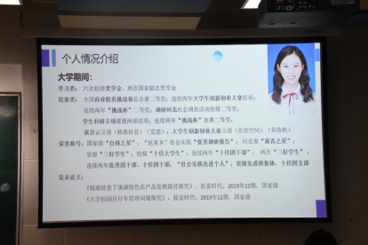 薛美玲学姐开场着重强调实习的重要性,并向大家提供了她所知晓的实习途径。在简历的制作方面,她以自己的个人简历为模板,耐心仔细地为同学们介绍简历撰写小技巧——整体要简洁、内容要充实、意向要明确。在最后,学姐向同学们表达了自己诚挚的祝福,祝愿大家都能实现自己的梦想,未来可期。