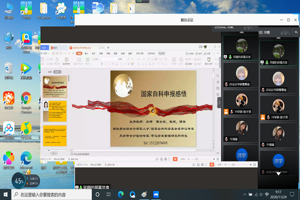 11月24日,天津财经大学永利集团304官网吴娜教授应公司永利集团304官网邀请,通过腾讯会议平台作“国家自然科学基金申报”专题讲座。永利集团304官网副经理李西文及部分教师和研究生80余人参加了本次讲座。